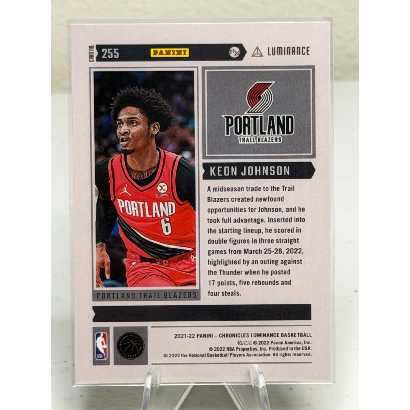 2021-22 Panini Chronicles Luminance Keon Johnson (RC) #255