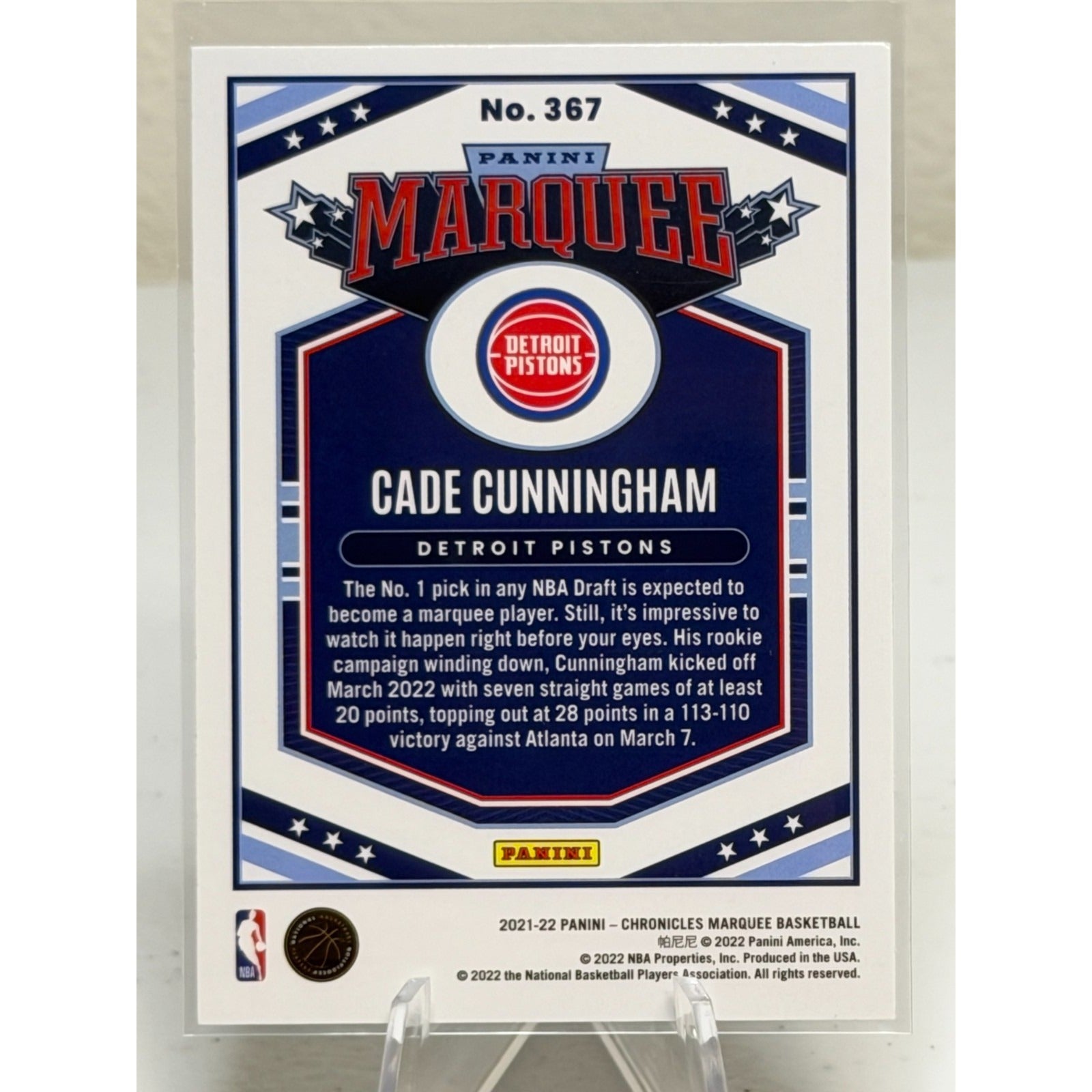 2021-22 Panini Chronicles Marquee Cade Cunningham Holo Foil (RC) #367