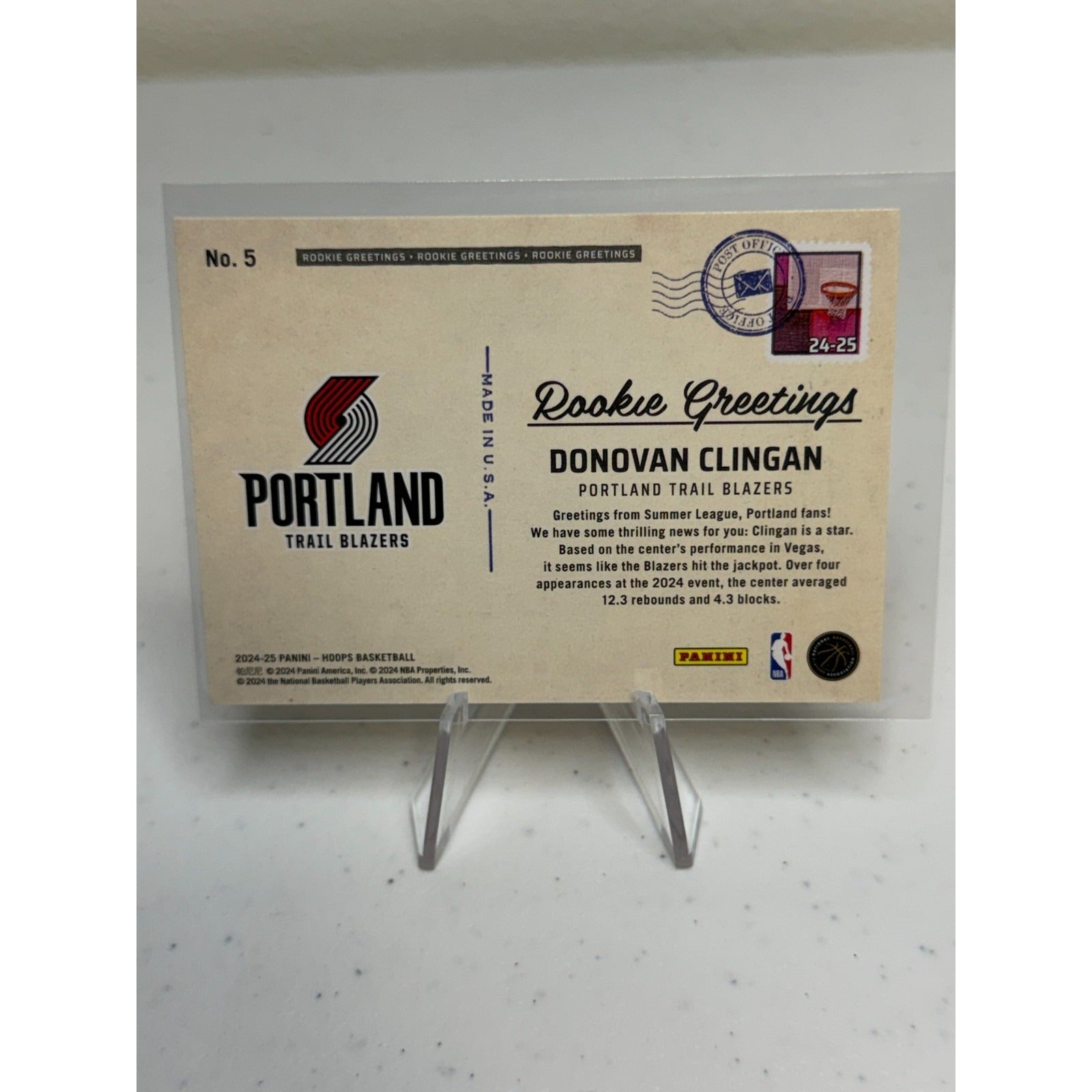 2024-25 NBA Hoops Donovan Clingan Rookie Greetings #5