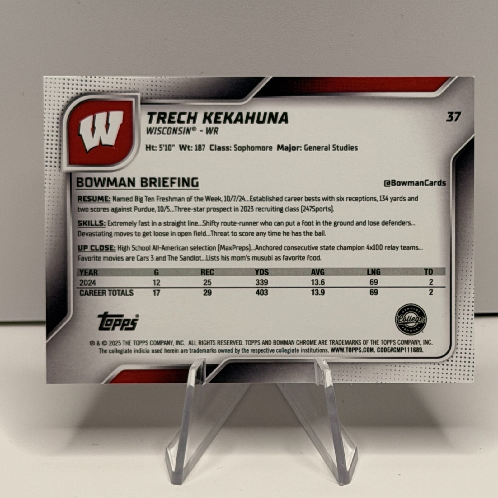 2025 Bowman Chrome U - Trech Kekahuna Pink Lava Refractor #37 Wisconsin Badgers