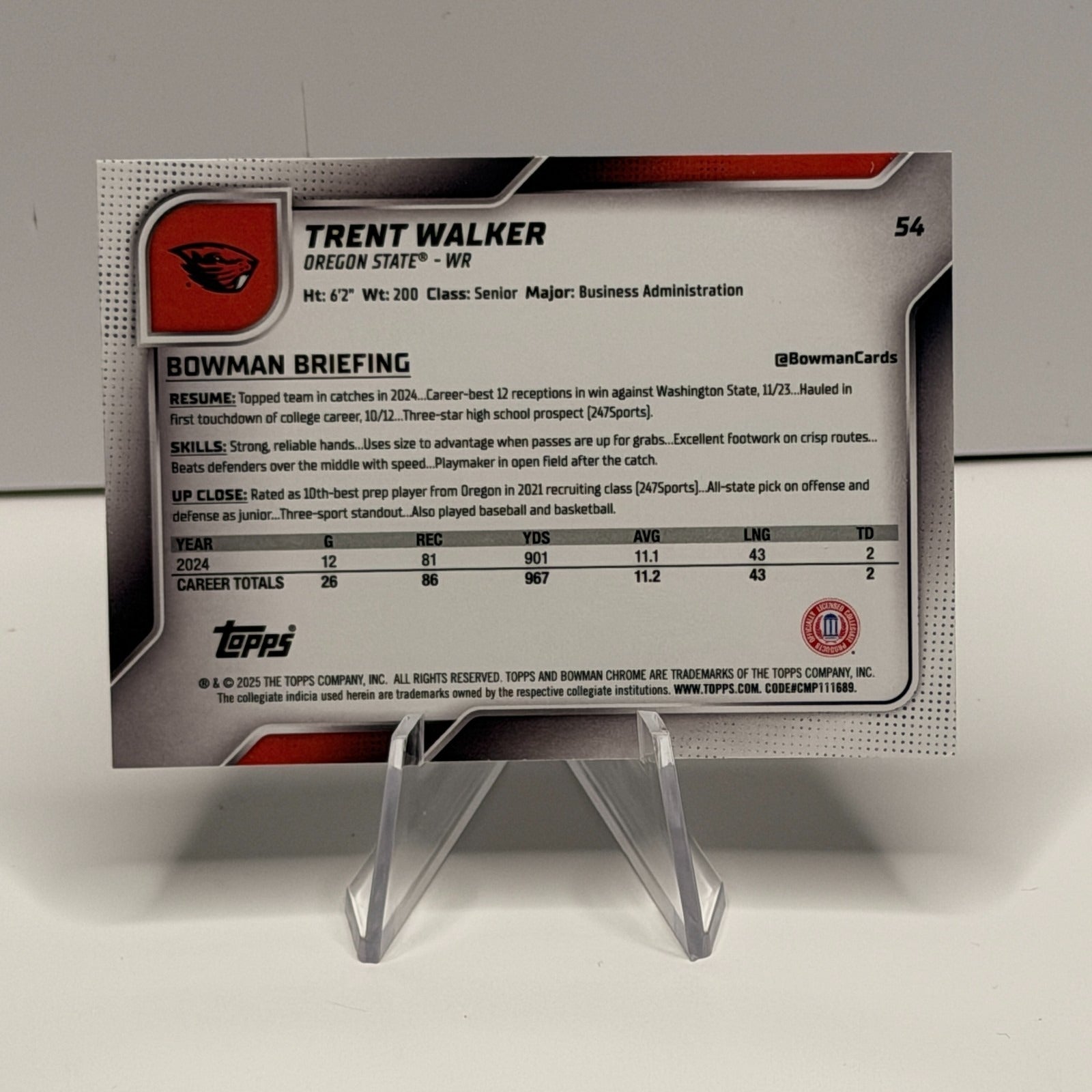 2025 Bowman Chrome U - Trent Walker #54 Oregon State Beavers