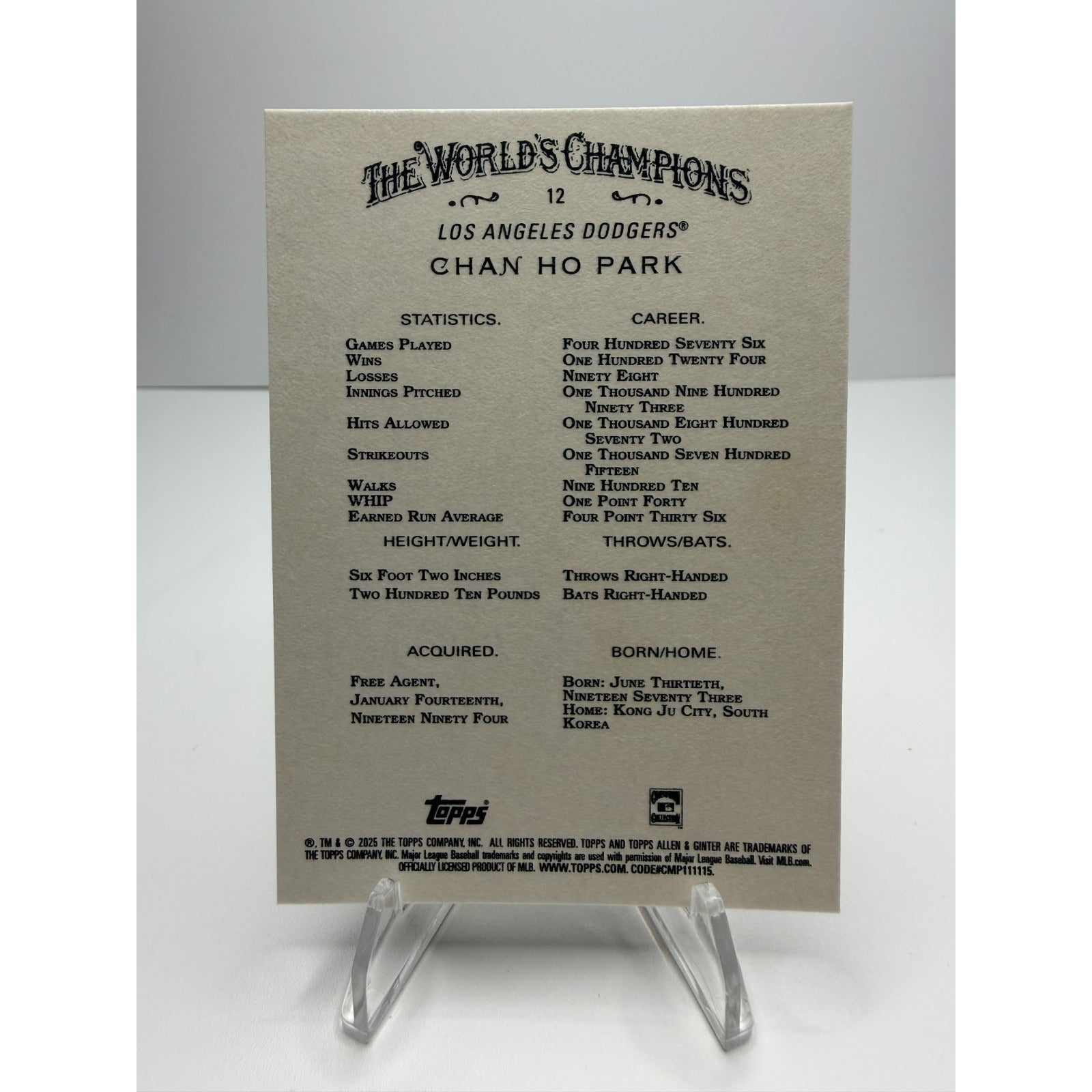 2025 Topps Allen & Ginter - Chan Ho Park #12