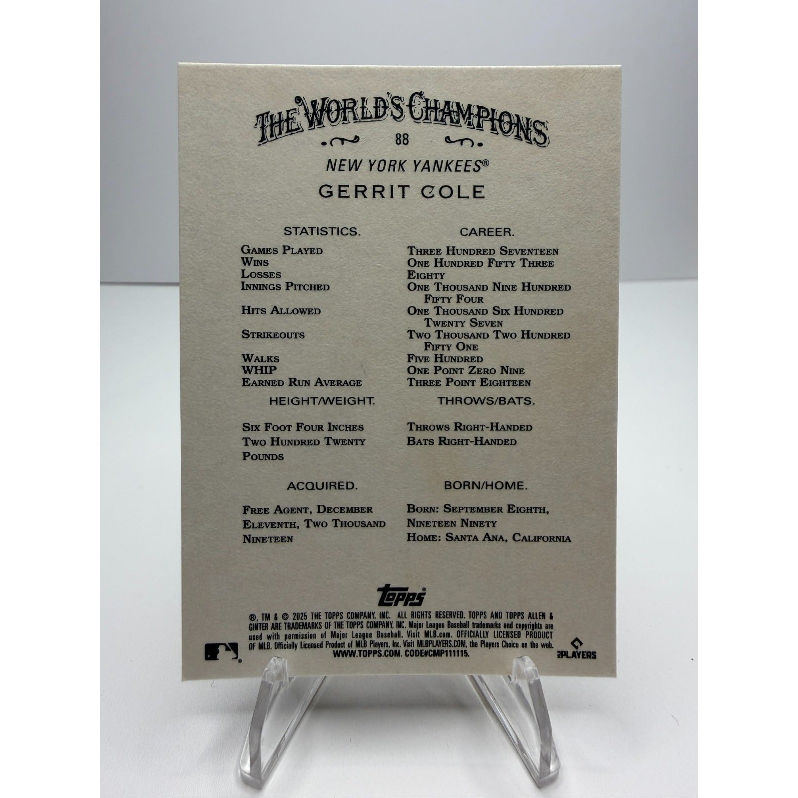 2025 Topps Allen & Ginter - Gerrit Cole #88