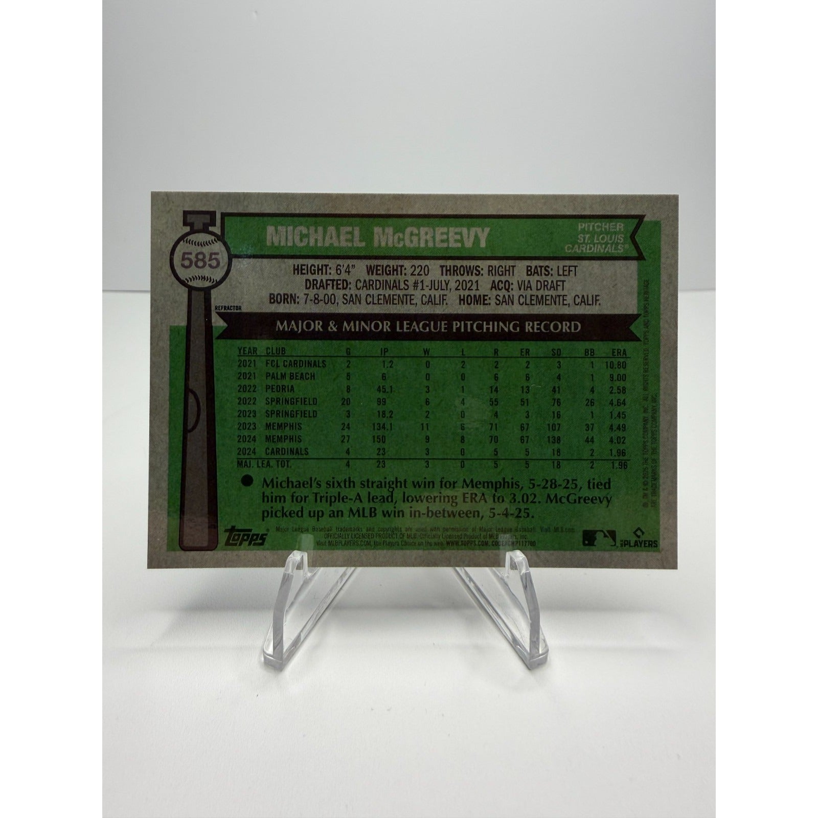 2025 Topps Heritage - Michael McGreevy (RC) Chrome Refractor #585