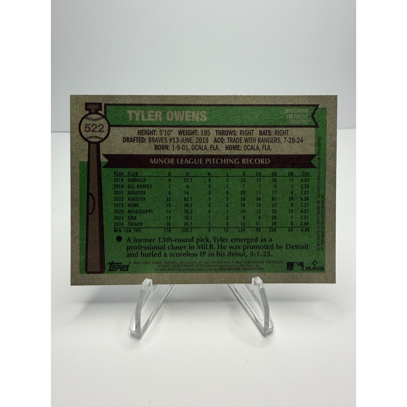 2025 Topps Heritage - Tyler Owens (RC) Blue Border #522