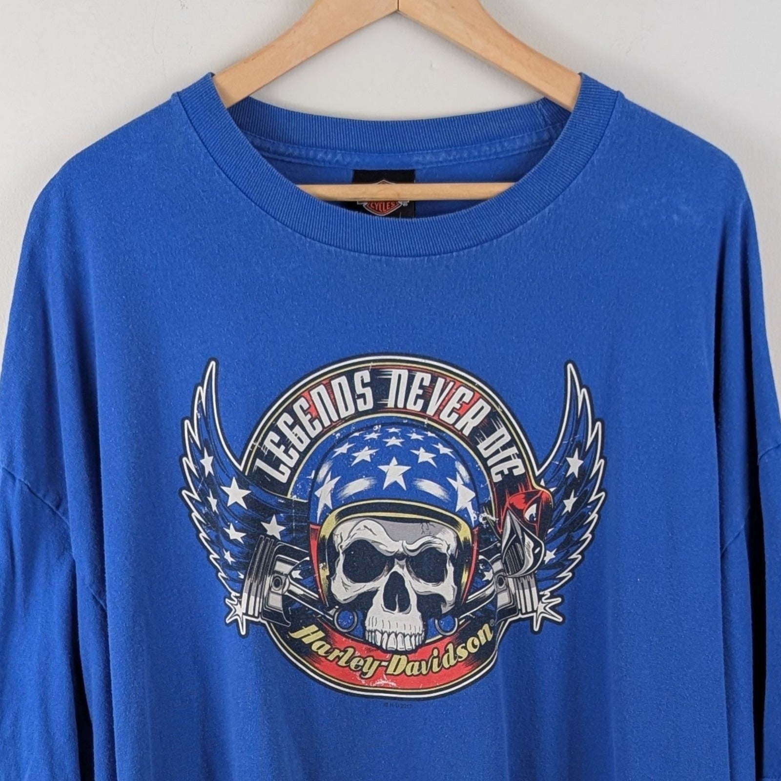 Harley-Davidson 3XL Legends Never Die Skull T-Shirt Blue Biker Tee