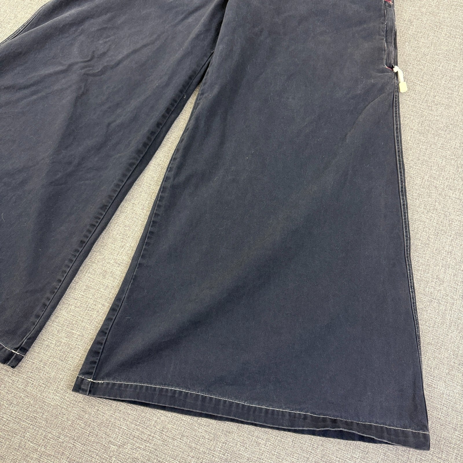 Description: Throw it back to the early 2000s with these iconic Kik Wear Industries wide-leg jeans in a washed black. These pants feature massive 21” openings for the classic baggy rave silhouette, detailed with red contrast stitch lines, utility straps, and Kik Wear logo hits on the back pocket and patch. Made of 100% cotton, they offer a durable, heavy feel perfect for skating or stomping to your favorite breaks. A staple for any Y2K, cyber, or streetwear collector.